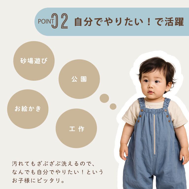 服の汚れを気にせずおもいっきり遊べる!ナチュラルな綿100%素材のかわいいプレイウェアです♪