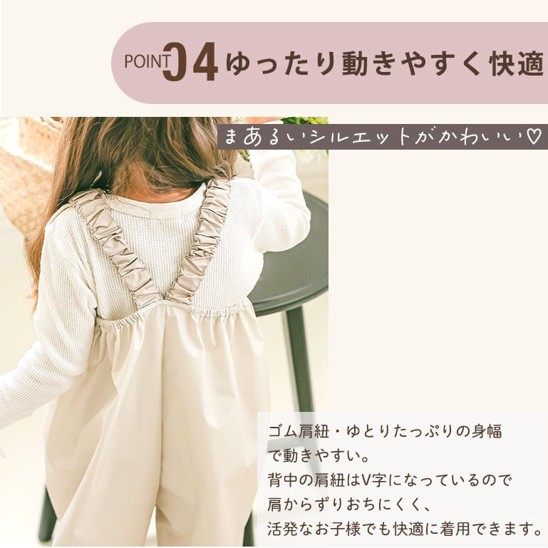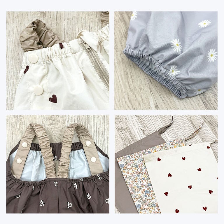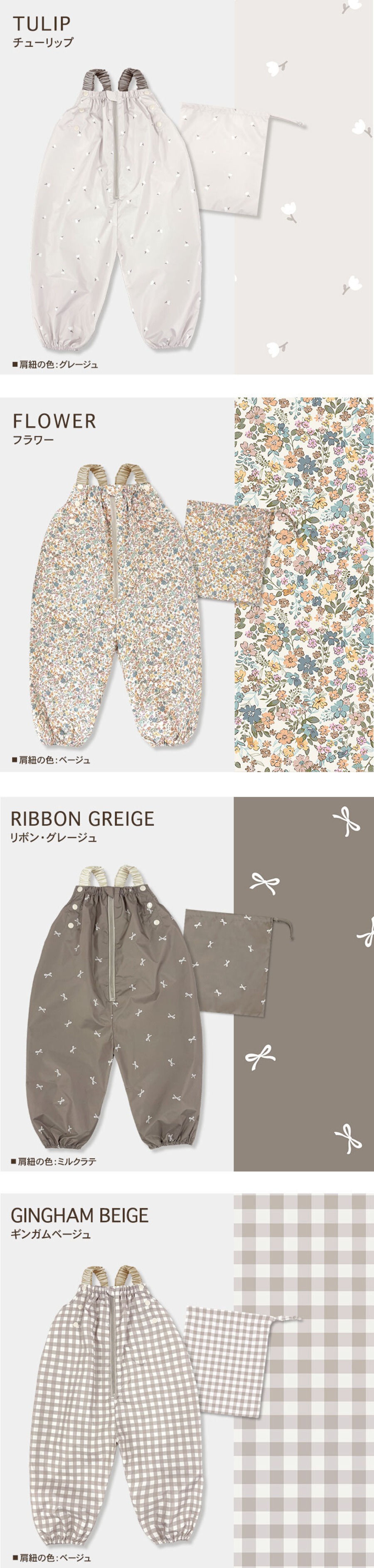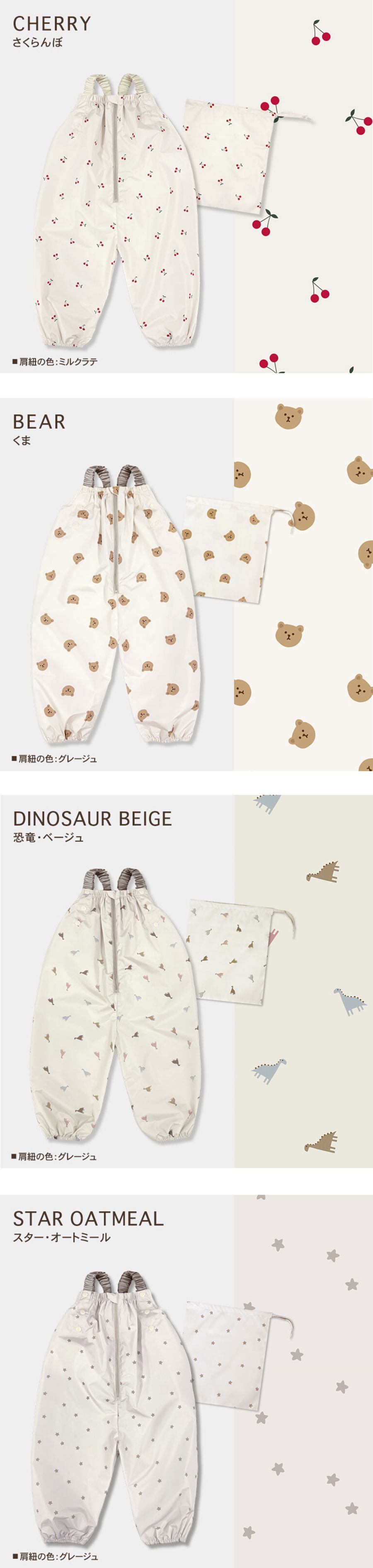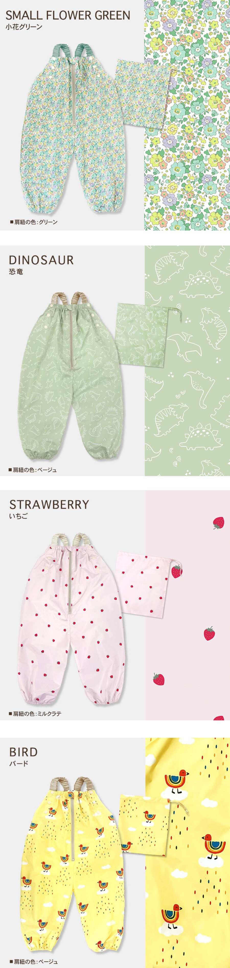 服の汚れを気にせずおもいっきり遊べる!かわいい柄のプレイウェアです♪
