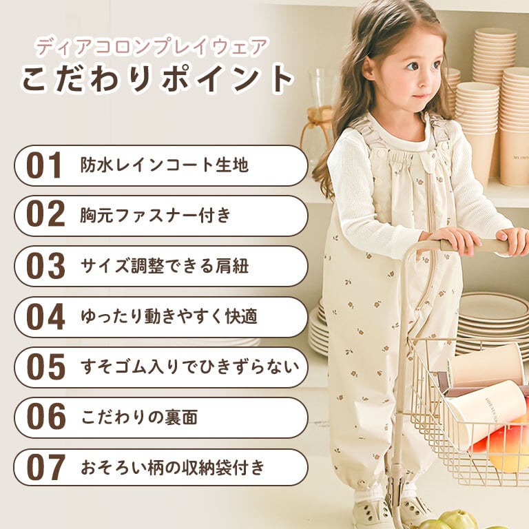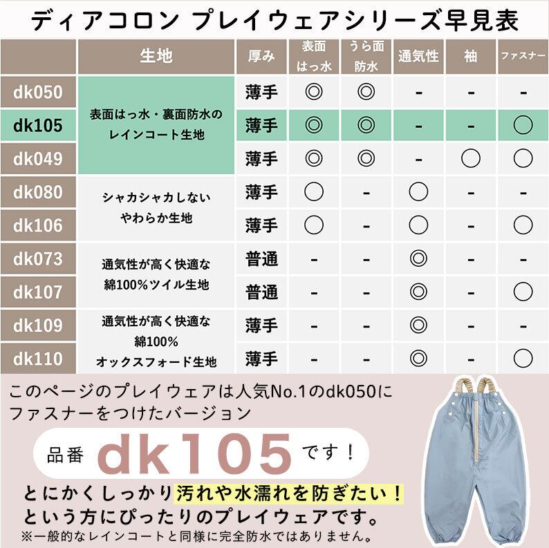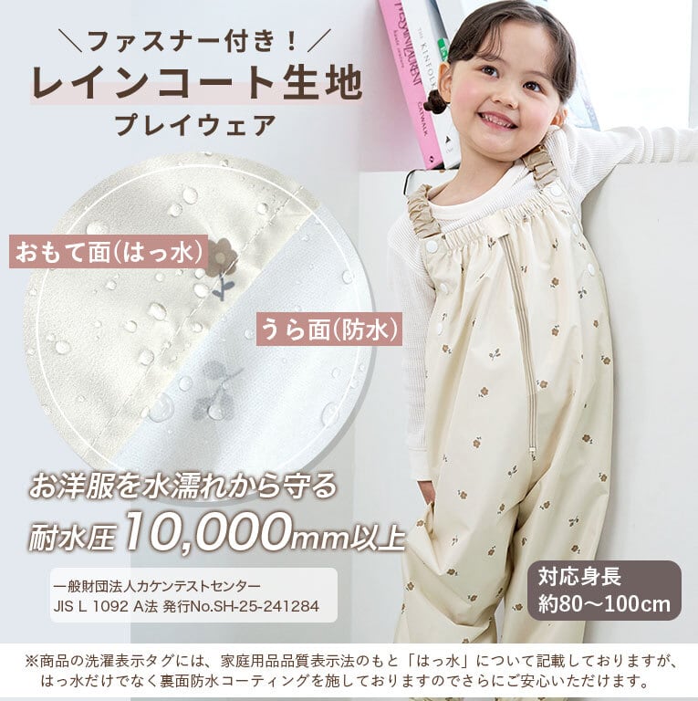 【メール便】プレイウェア ファスナー 防水 調節可能 お砂場着 80-100cm対応 かわいい ベビー服 出産祝い プレゼント dk105
