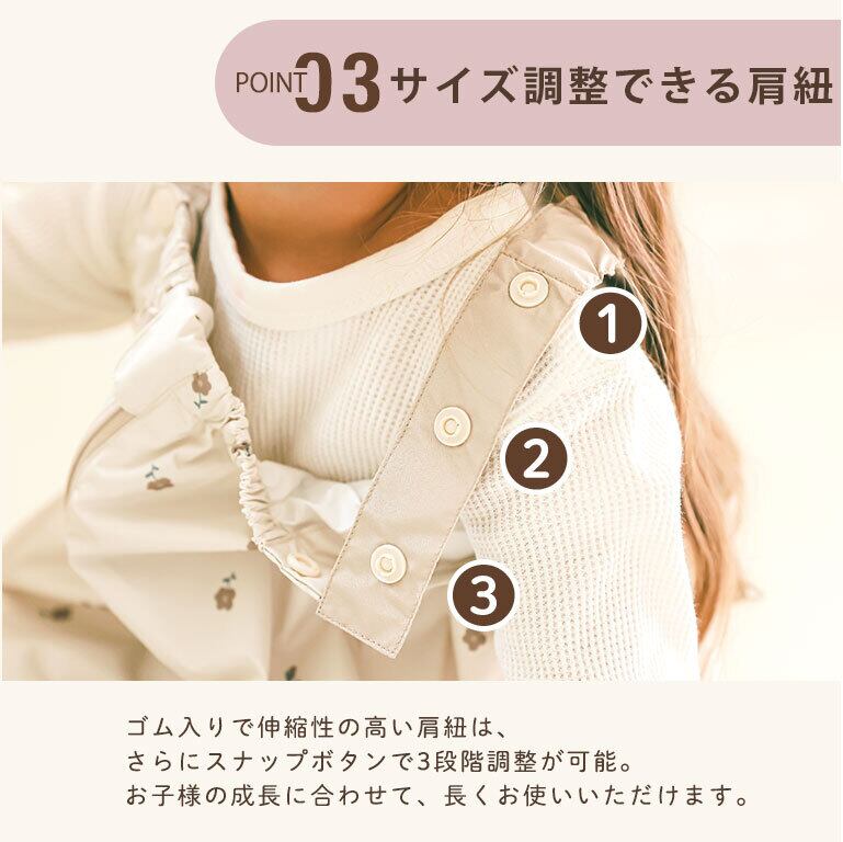 スナップボタンで肩紐調節可能だから、お子様の成長に合わせて長くお使いいただけます。