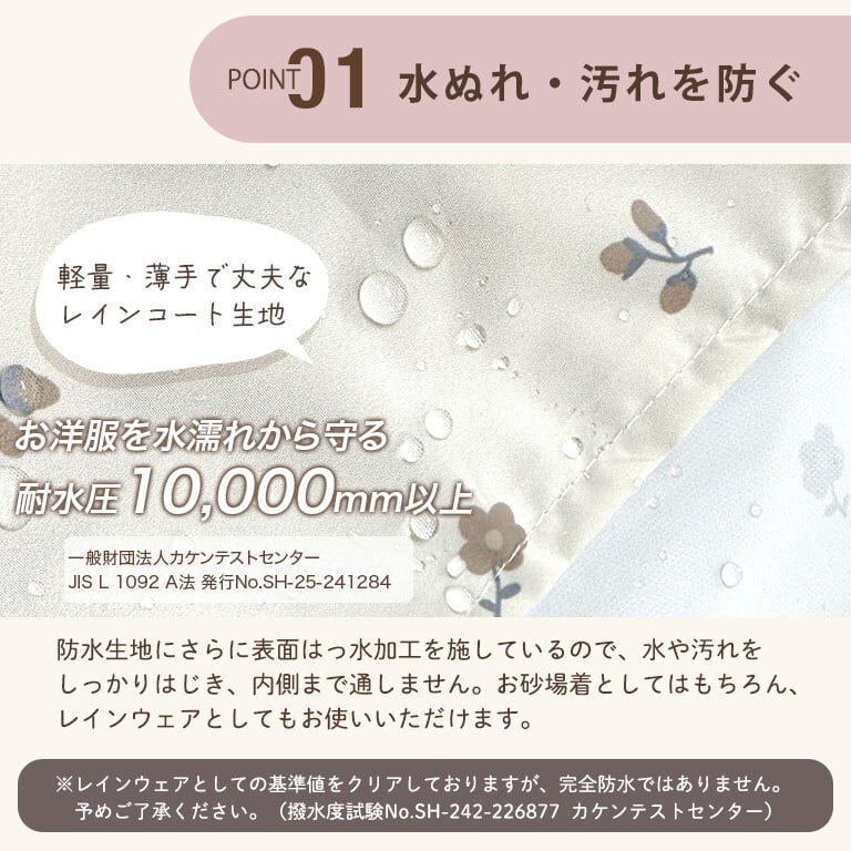 ※レインウェアとしてのはっ水性能基準をクリアしておりますが、完全防水ではありませんので予めご了承ください。
