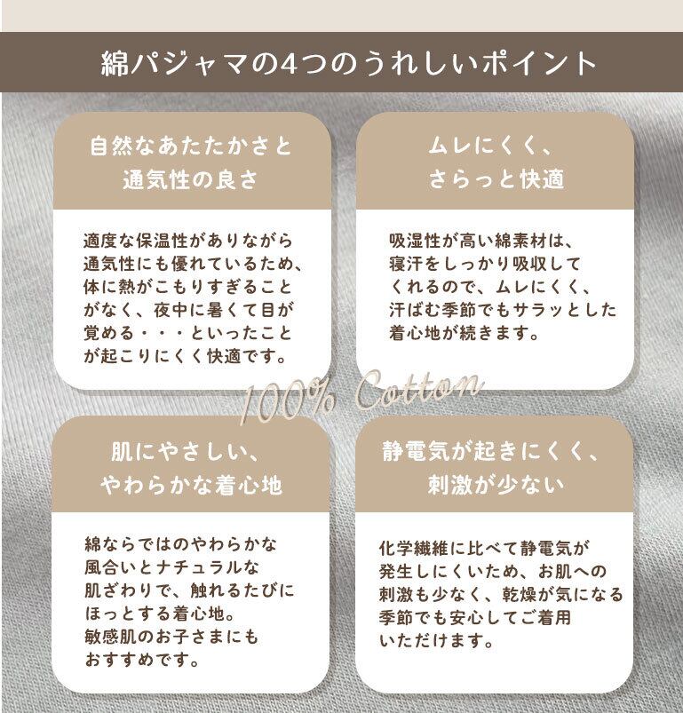 ●季節の変わり目にピッタリのさらっと薄手の生地感。春や秋はもちろん、夏の冷房対策や、暑がりなお子様の冬用パジャマとしてもおすすめです。