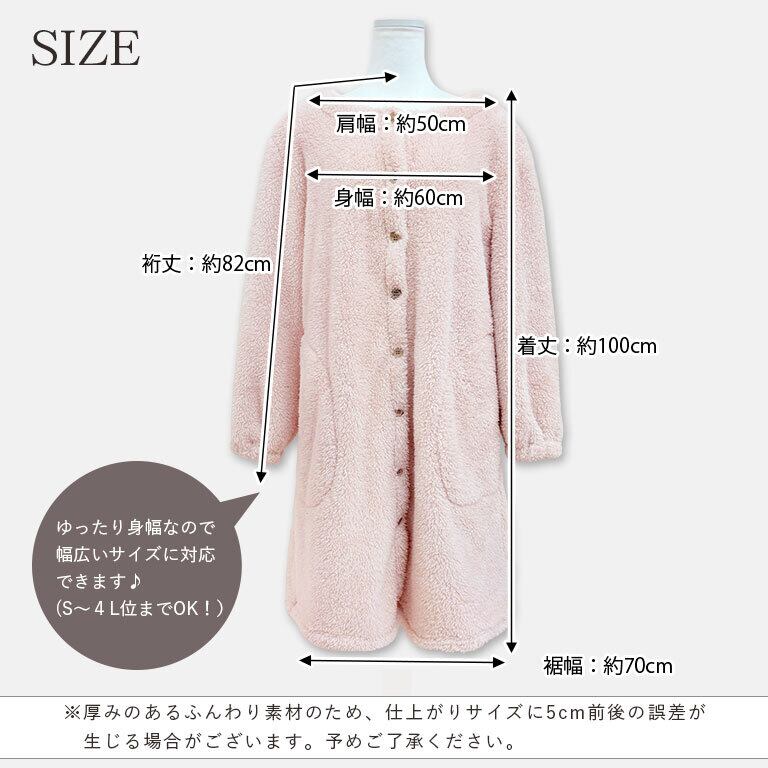 首元すっきり、動きやすく使いやすいロングカーディガンタイプのもこもこルームウェア。