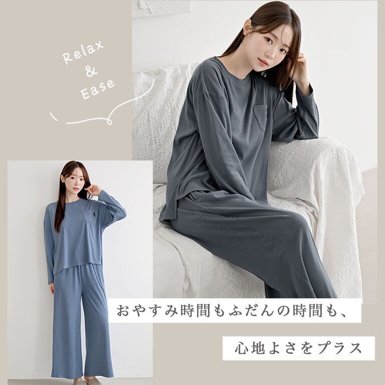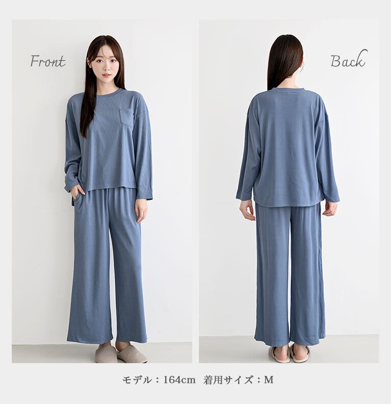 【送料無料】ふわとろ 起毛リブ 極上の手触り ルームウェア ワイドパンツタイプ レディース パジャマ のびのび 部屋着 薄手 あたたかい dr009