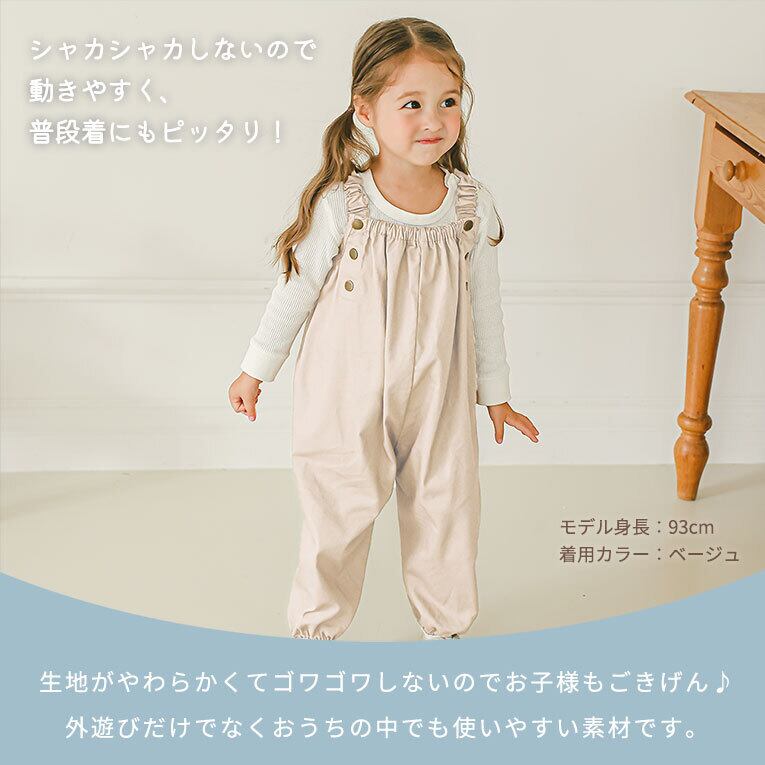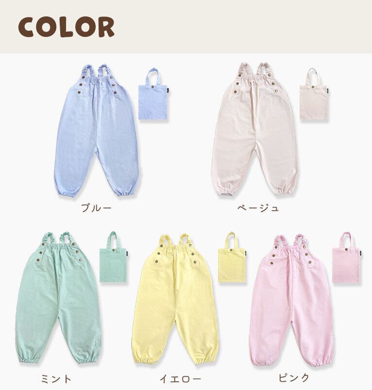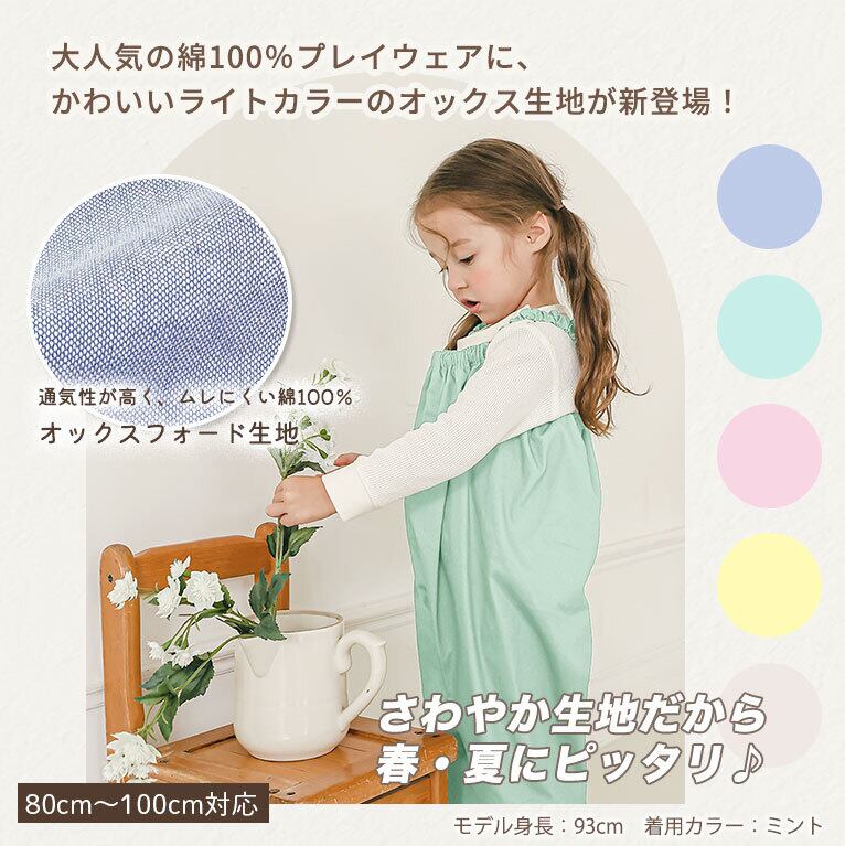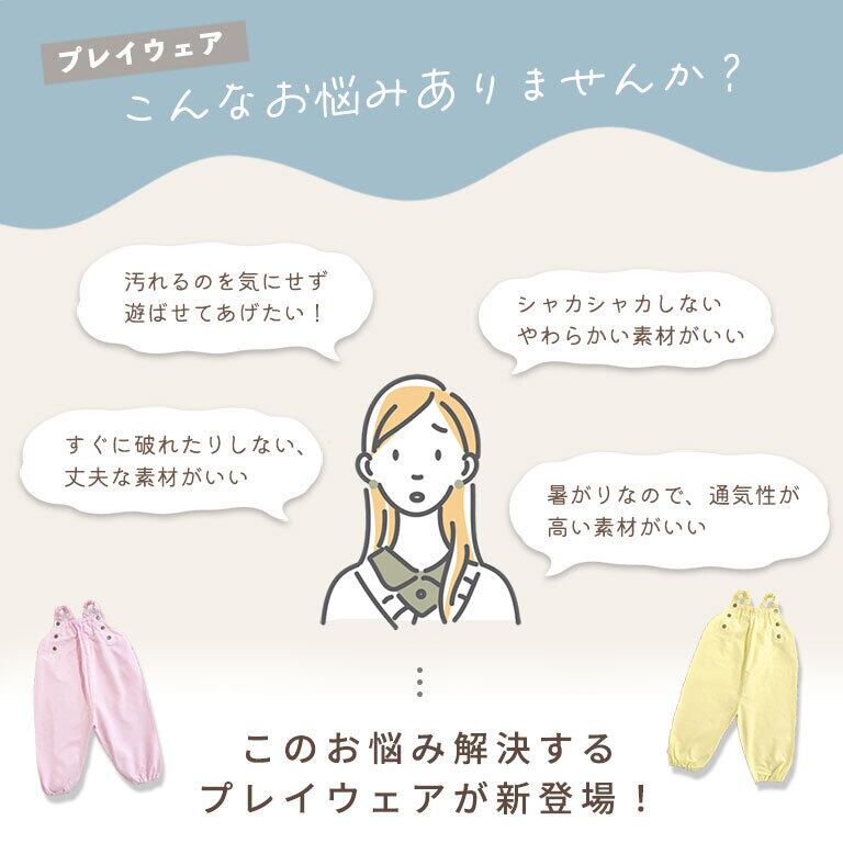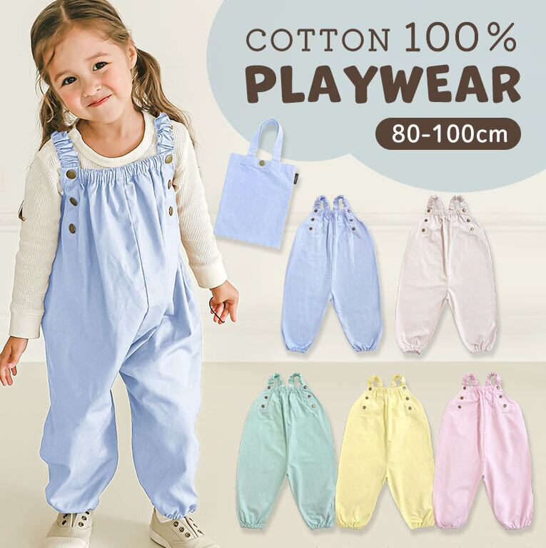 服の汚れを気にせずおもいっきり遊べる!綿100%素材でかわいいライトカラーのプレイウェアです♪