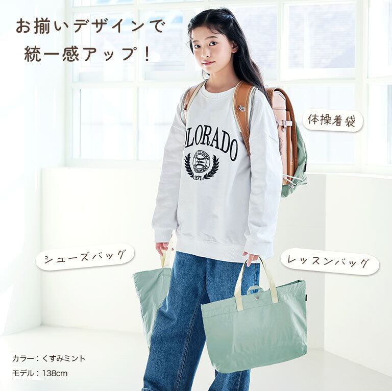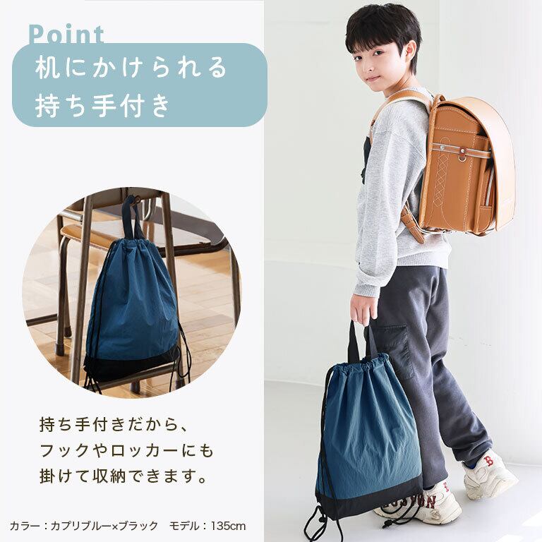 ●一般的な体操着入れより一回り大きいサイズ感。お子様の成長に伴って多くなる荷物をしっかり収納できます。