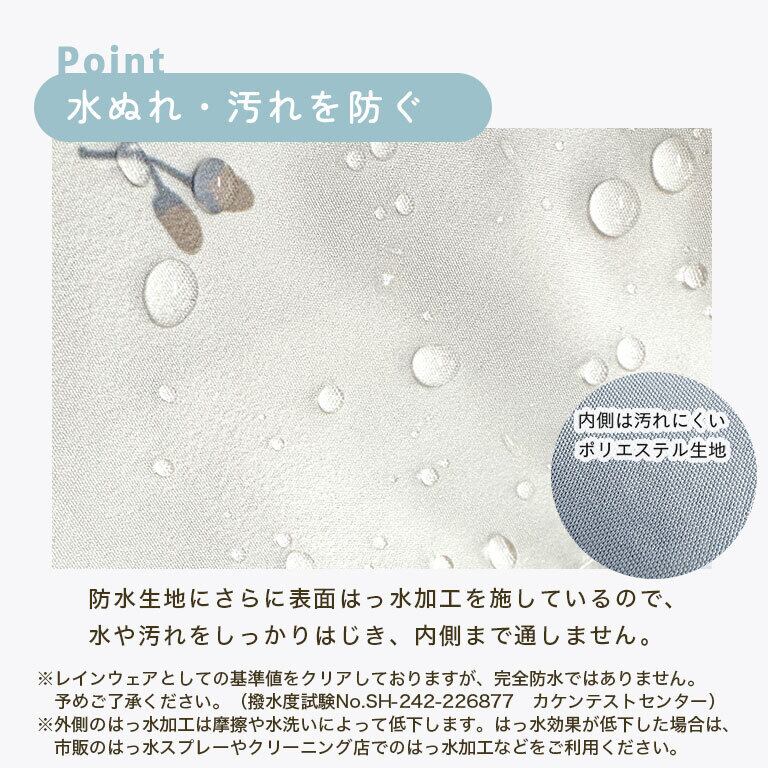 表地:ポリエステル100%(伸縮性なし)(防水コーティング・撥水加工あり)