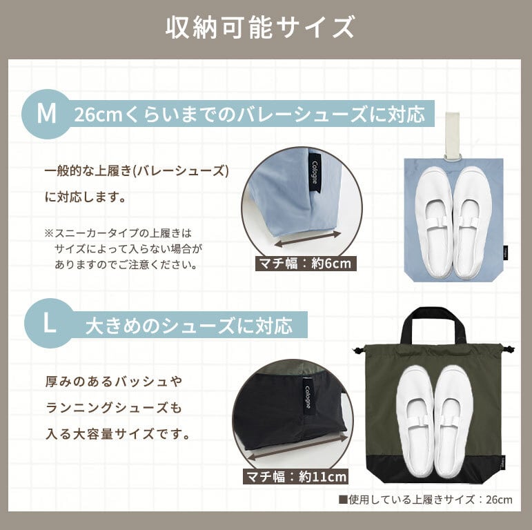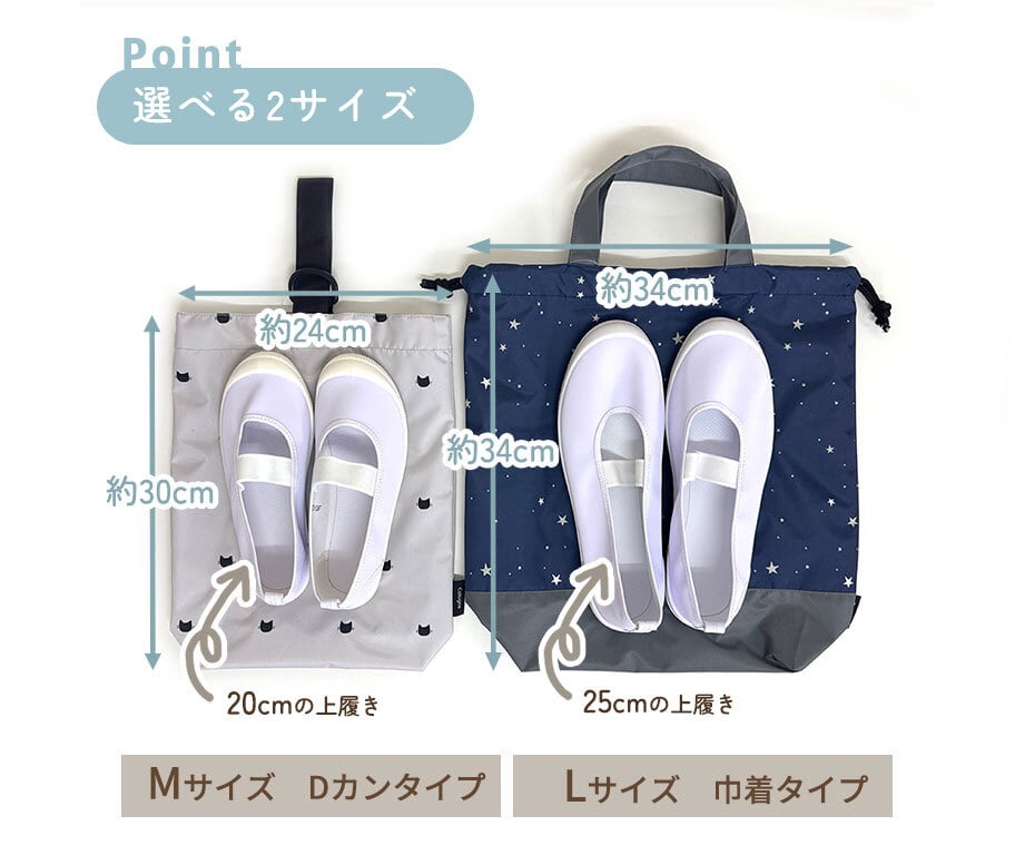 ※Mサイズは一般的な上履き(バレーシューズ)に対応します。