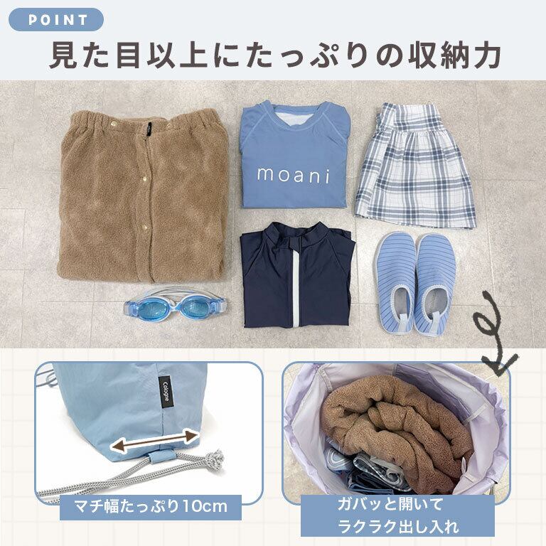 ※水を含んだ水着やタオル等を長時間入れておくと、外に水が滲み出てきたり、カビが生えたりする可能性がございますのでご注意ください。