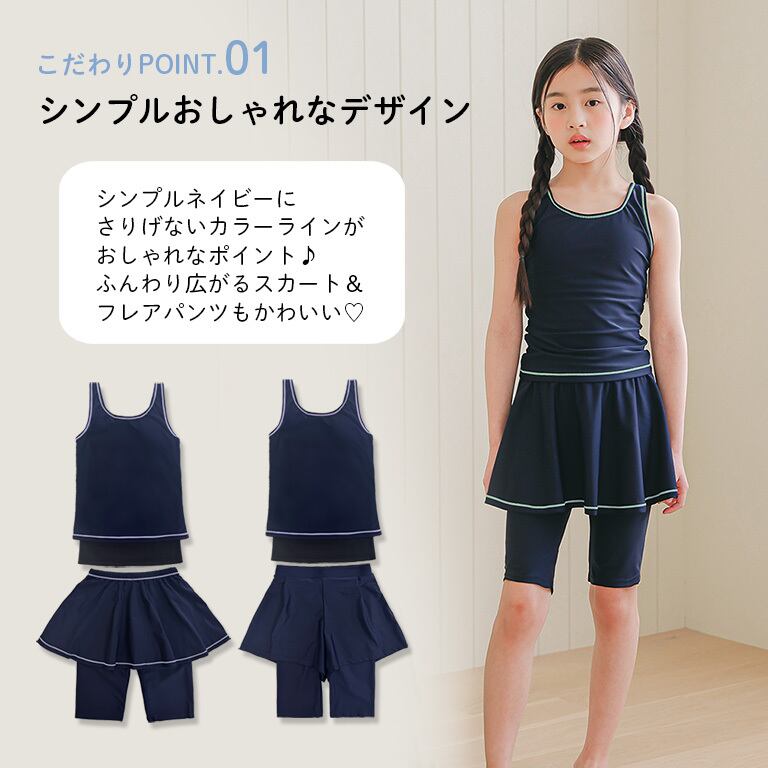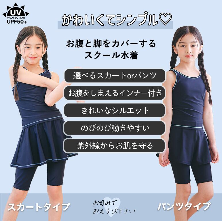 【メール便】スクール水着 女の子 セパレート インナーがくっついた 水着 インナー付き インナーパンツ付き レギンス 付き 選べる 体型カバー パンツ ネイビー sk1921