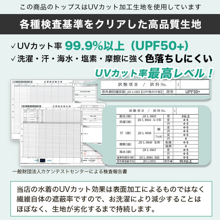 ●トップスはUPF50+の紫外線カット生地。紫外線遮へい率は99.9%以上!
