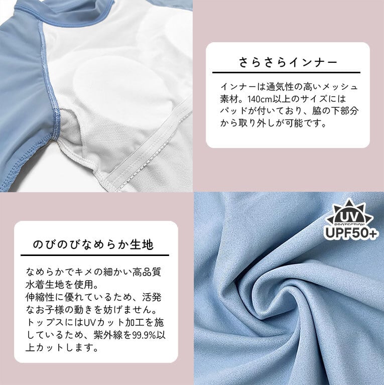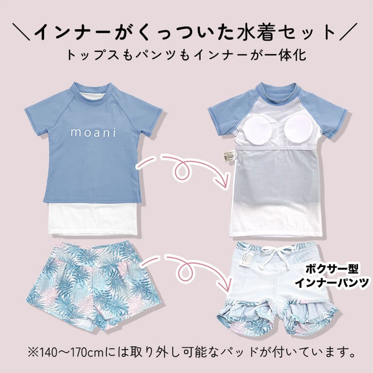 ※140cm、150cm、160cm、170cmの水着には、胸パッドが入っています。