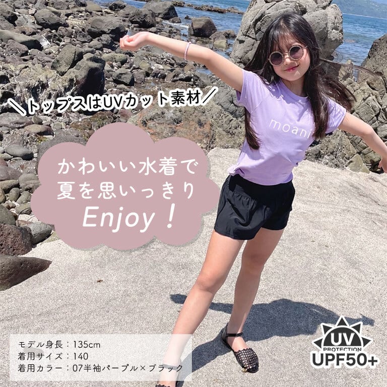 【宅配便】長袖&半袖!インナーがくっついた 水着 上下セット 女の子 UVカット 紫外線遮へい率99.9%以上 ショートパンツ セパレート 2点セット dd002