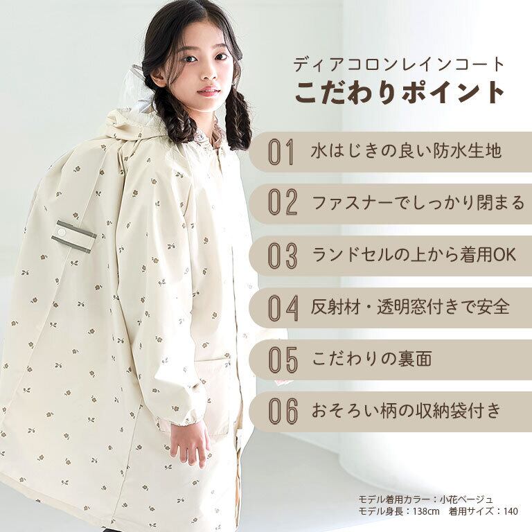 【メール便】レインコート キッズ ランドセル対応 子供 撥水 防水 女の子 男の子 かわいい da039