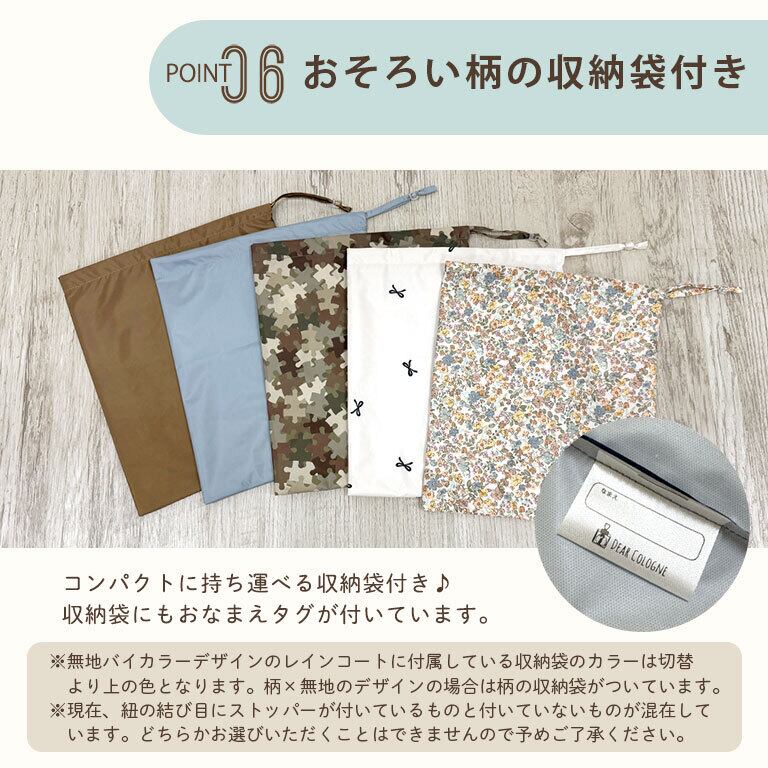 ●レインコートと同じ色柄の便利な収納袋付き!