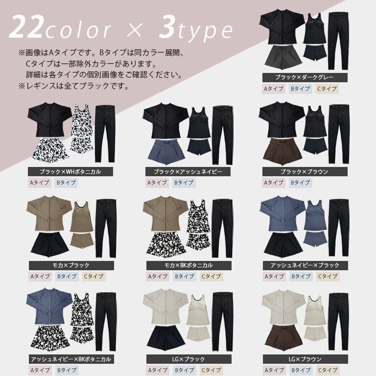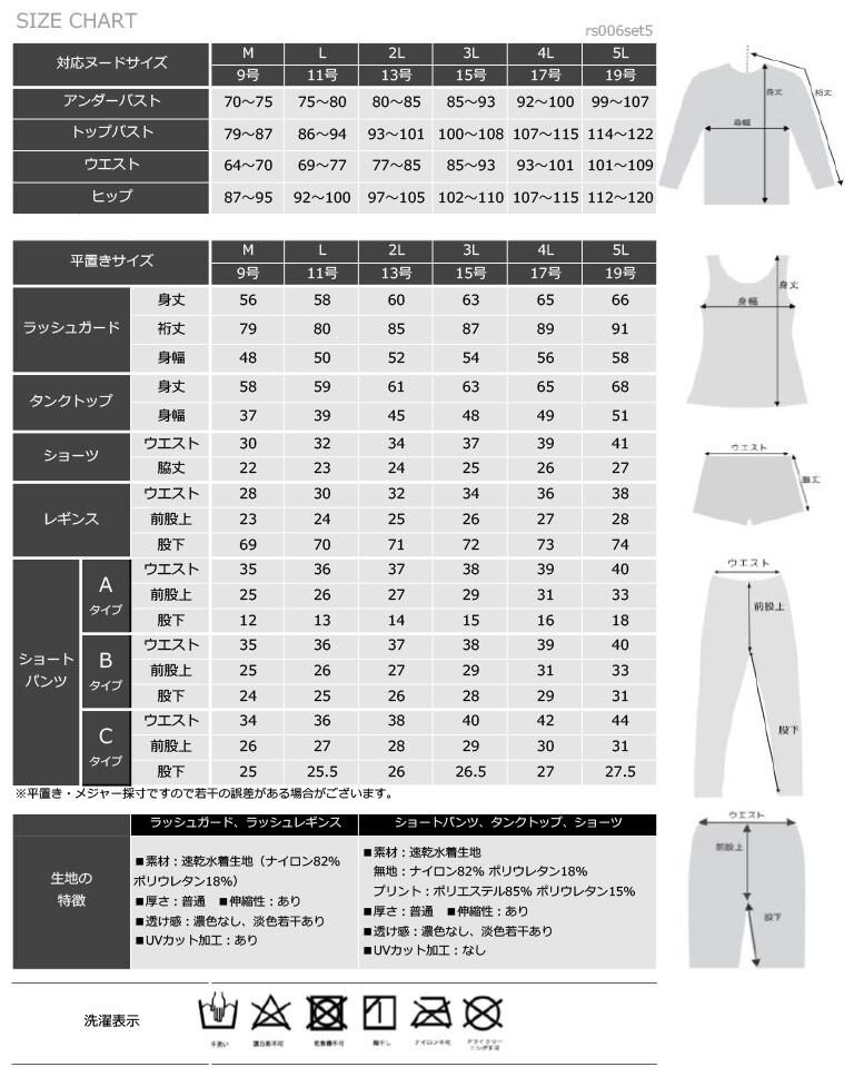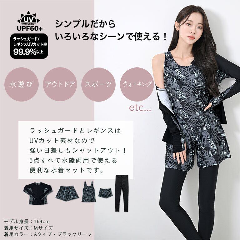 UVカットラッシュガード・ショートパンツ・上下タンクトップ水着・ラッシュレギンスのお得な5点セット