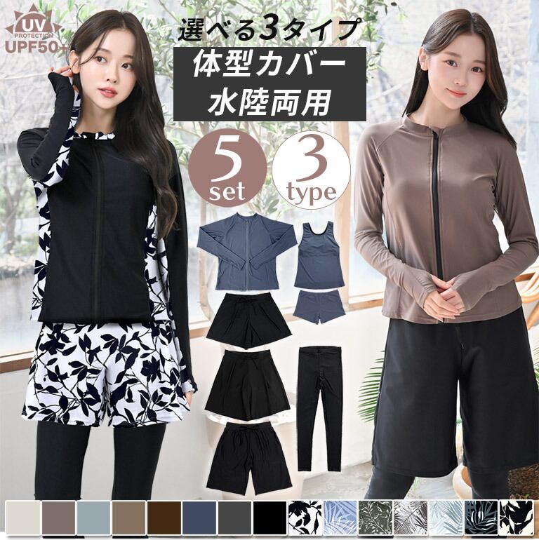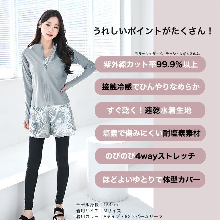 【宅配便】UVカット率99.9%以上 ラッシュガード 水着5点セット レディース 水着 体型カバー ショートパンツ タンクトップ ラッシュレギンス rs006set5