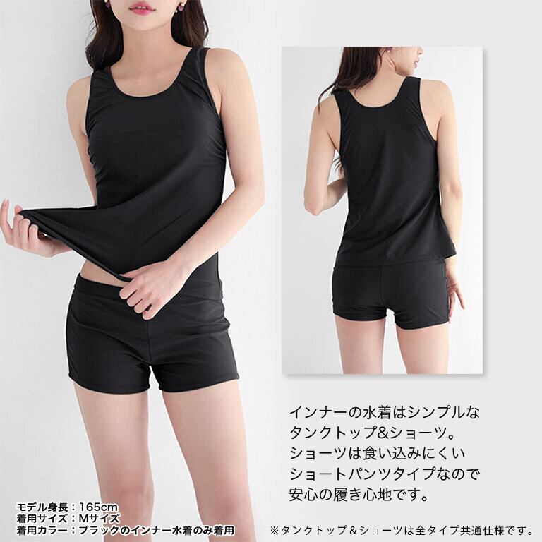 ●中のタンクトップは取り外せるブラパッド付き。シンプルデザインなのでお手持ちの水着とコーディネートしても◎