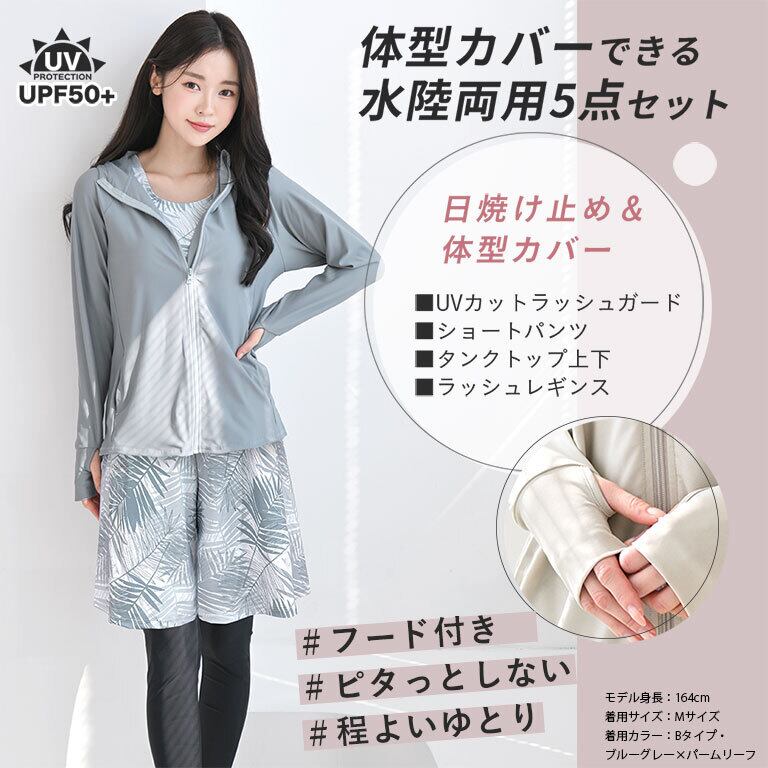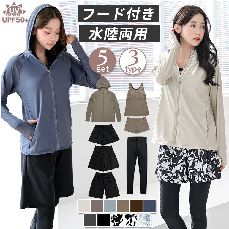 【こちらはフード付きラッシュガード水着5点セットのページです】