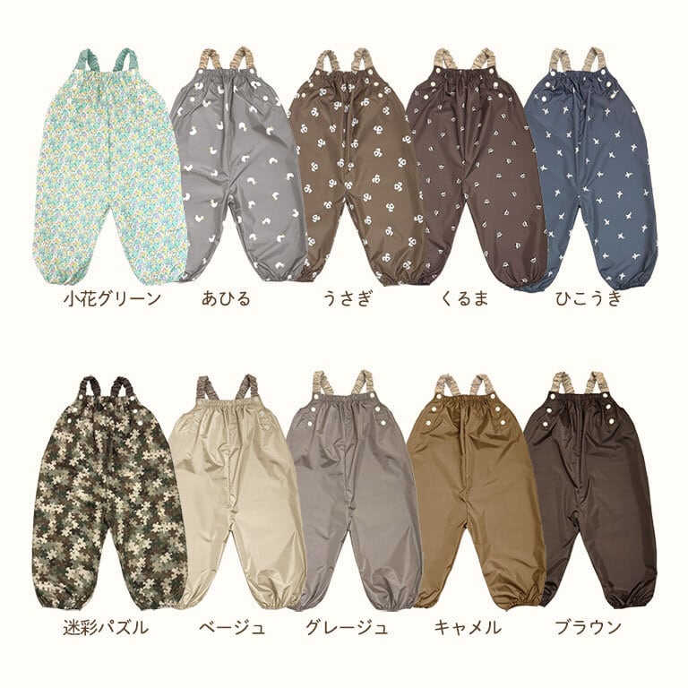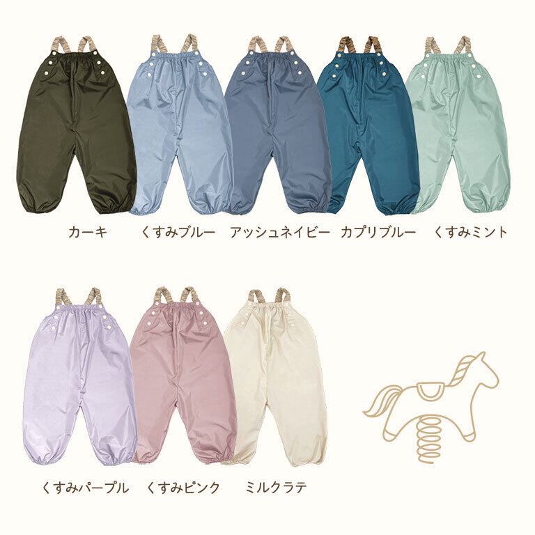 ●水を弾きやすく、汚れも付きにくい安心の防水・撥水加工生地を使用。雨の日はレインパンツとしてもお使いいただけます。