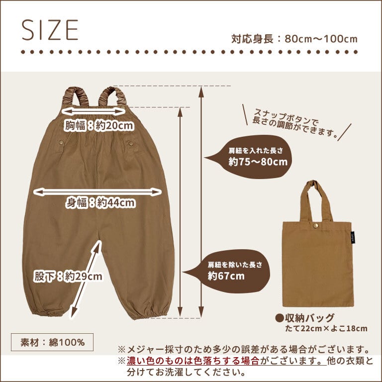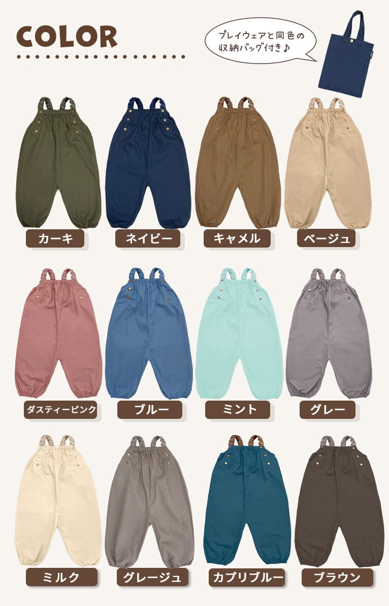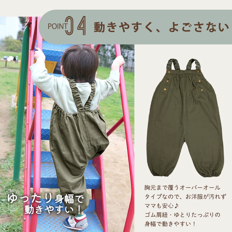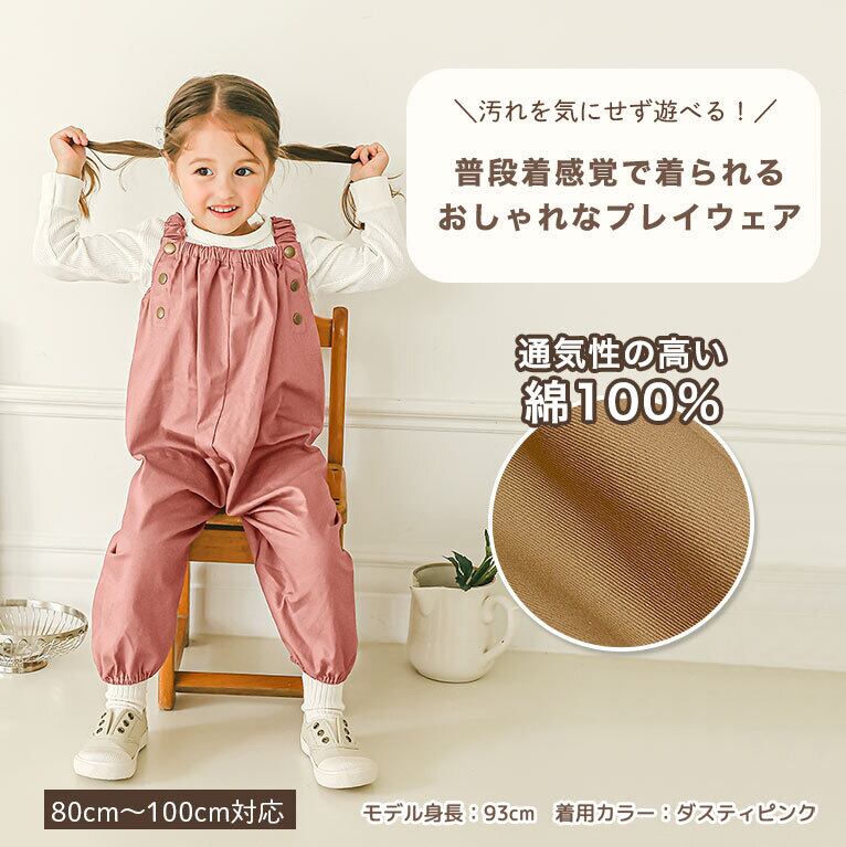 【メール便】プレイウェア 綿100% 80-100 砂場着 遊び着 パンツ オーバーオール 子供 男の子 女の子 dk073
