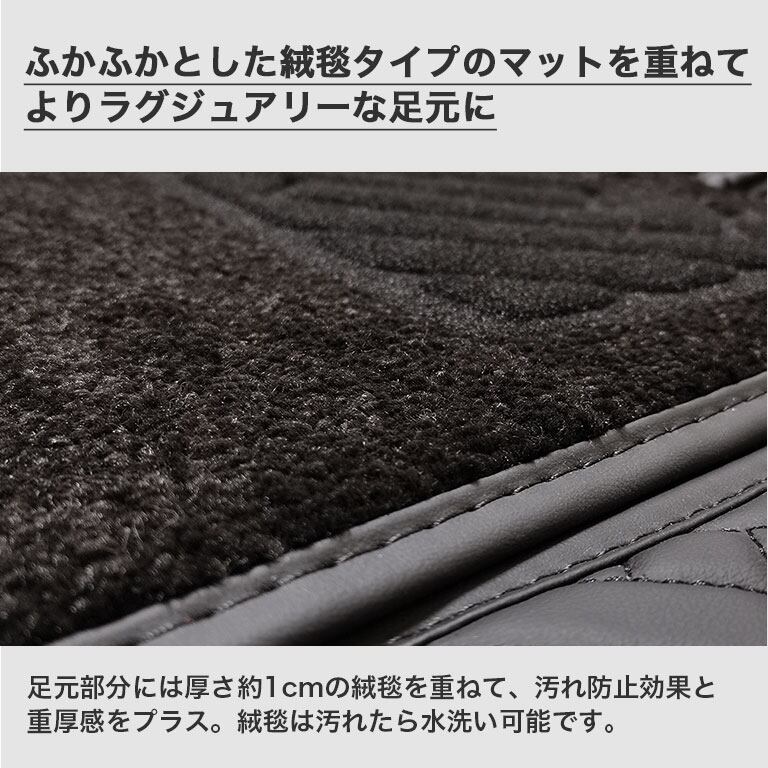 重厚感のあるPUレザー・絨毯の2枚重ねタイプのハイグレードフロアマット。(フルセット1台分)