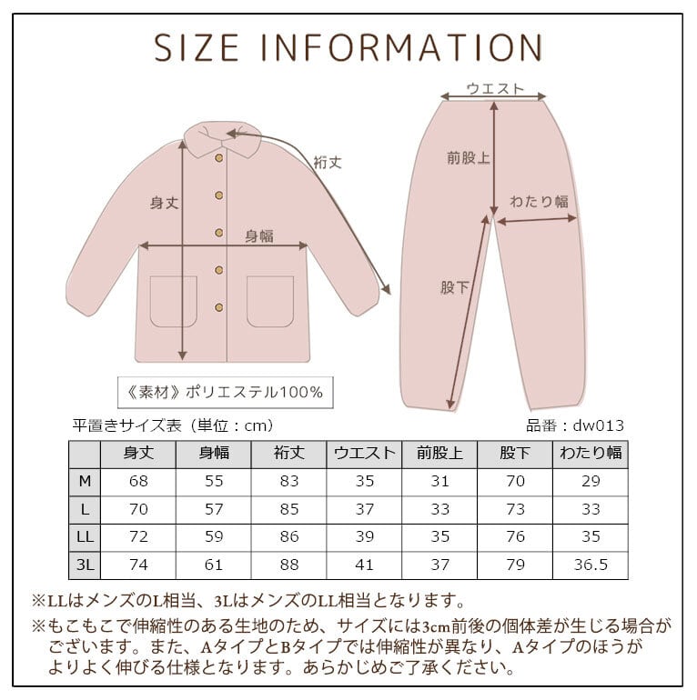 【サイズ】M、L、LL、3L(サイズについて詳しくは商品画像をご覧下さい。)