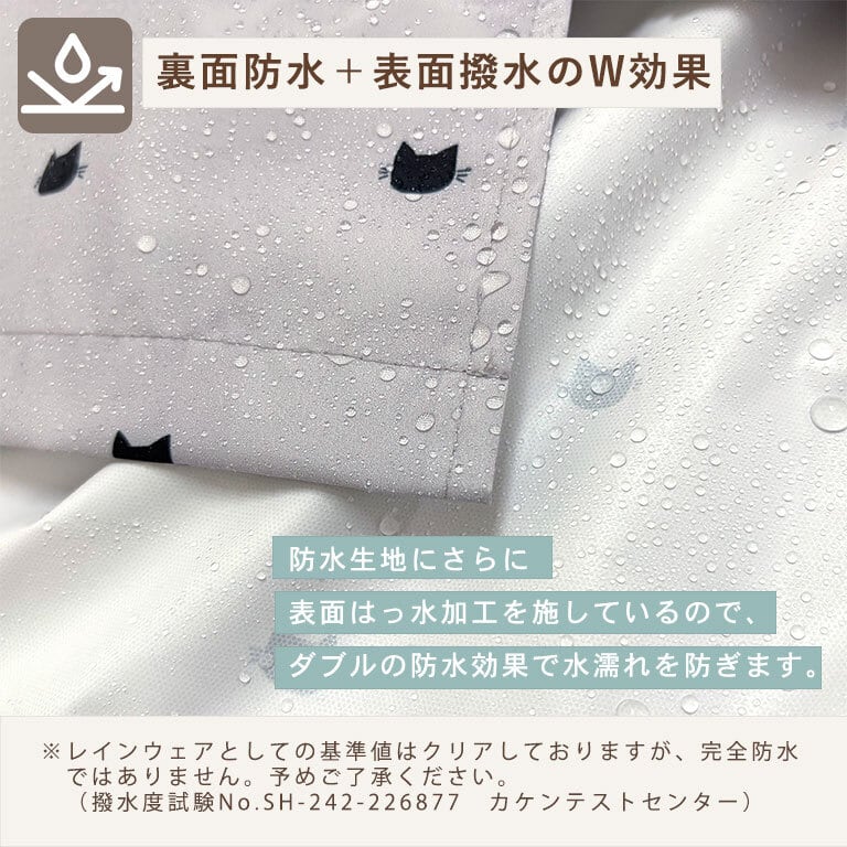 ※裏面の防水コーティングは継続使用により防水機能が低下することはありませんが、表面のはっ水性能は摩擦やお洗濯により低下します。
