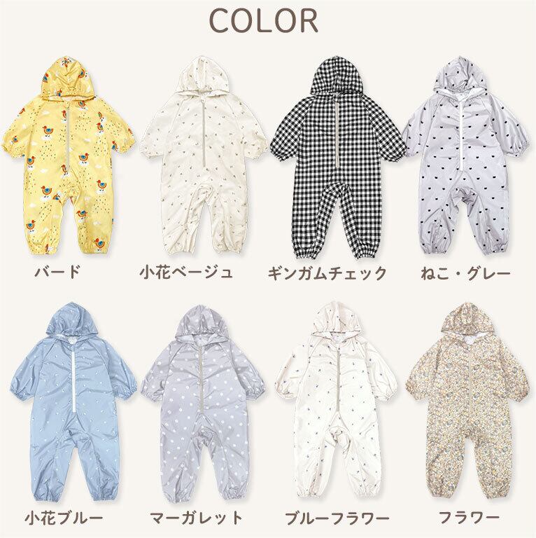 服の汚れを気にせずおもいっきり遊べる!かわいい柄のレインロンパースです♪