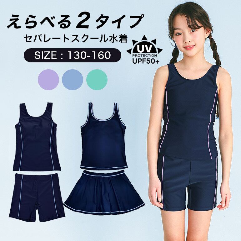 【メール便】スクール水着 女子 大きいサイズ セパレート インナーパンツ付き スカートパンツ UPF50+ sksa
