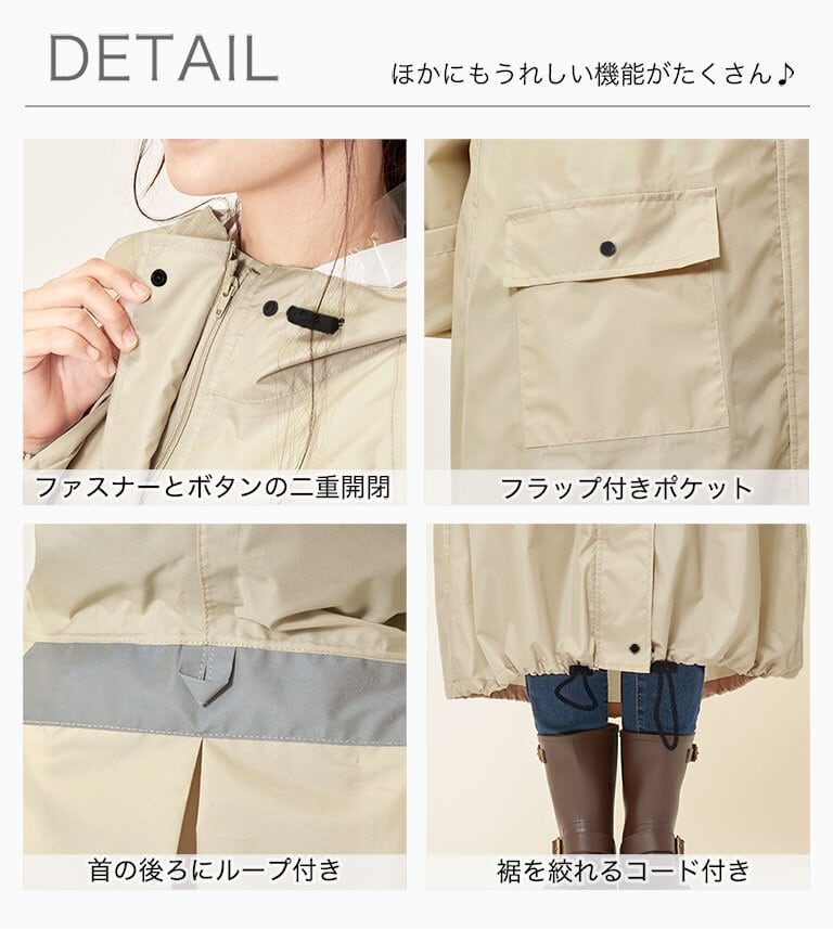 ★他にもフラップ付きポケット、首の後ろのループ、裾をしぼれるコードなど、便利な機能がたくさん。