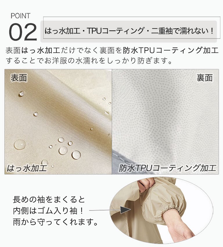 ★長めの袖をまくると内側はゴム入り袖。手も雨から守ってくれます。
