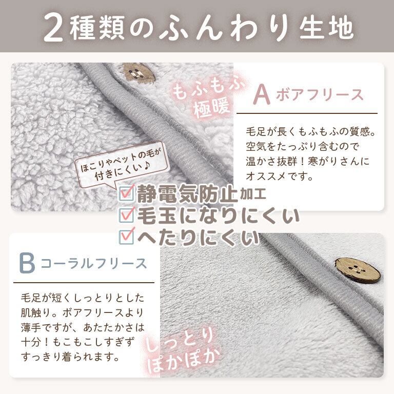 ●もふもふ極暖AタイプとしっとりぽかぽかBタイプ生地から選べます。