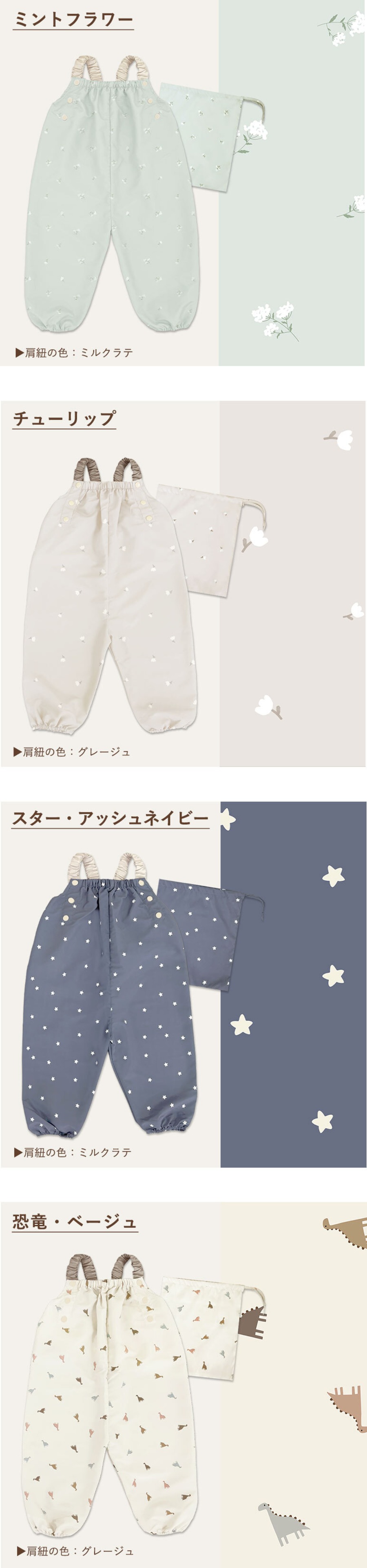 服の汚れを気にせずおもいっきり遊べる♪かわいい柄のプレイウェアです♪