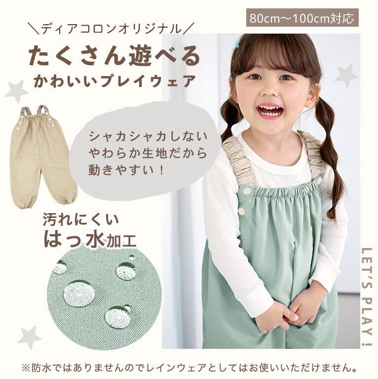 【メール便】はっ水 やわらか プレイウェア 調整可能 80-100cm対応 お砂場着 遊び着 つなぎ 撥水 砂場着 80 85 90 95 100 ベビー キッズ dk080